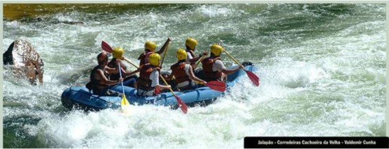 Para os dias de rafting no Rio Novo, o viajante conta com um bote cargueiro para levar todos equipamentos e aparatos necessários, remo, colete salva-vidas, capacete e uma equipe tecnicamente qualificada para garantir uma atividade dentro dos padrões internacionais da modalidade.