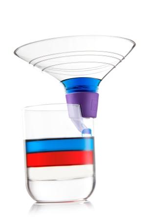 A Vacu Vin desenvolveu um funil especialmente para auxiliar a confecção dos coquetéis em camadas.Ele pode ser usado tanto pelos profissionais da área, como pelos amadores, que adoram se aventurar no balcão. O desenho especial retarda os fluídos e cria belas camadas que se baseiam na densidade dos líquidos. O funil já vem com algumas marcas de coquetéis clássicos, sem deixar que fazer um convite para que cada usuário crie o seu próprio drinque.
