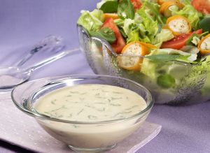 Sirva a salada e o molho acompanhando carnes brancas grelhadas.