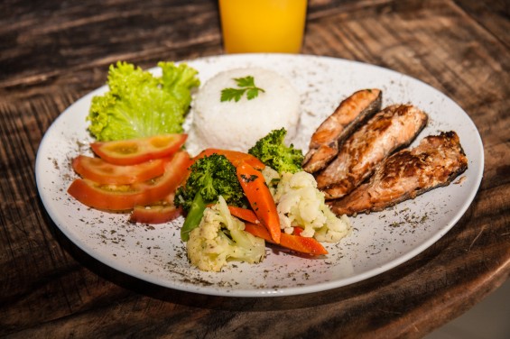 Entre as opções de carne, o Garage Bar oferece Filé de Frango ($ 21,90), Filé de Tilápia ($ 23,90), Contra Filé ($ 24,90), Filet Mignon ($ 34,90) e Salmão ($ 34,90). Para os vegetarianos e veganos, a Salada Vegana (21,90) vem com tofu, palmito, tomate e mix de folhas.