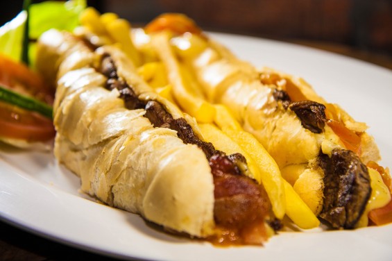 Entre as guarnições, o cliente por escolher arroz, feijão, fritas, legumes, farofa, ovo, bacon, vinagrete, salada ou maionese, finalizando com molho funghi secchi, poivre, madeira, maracujá ou creme de milho.